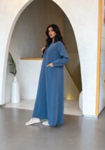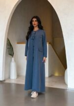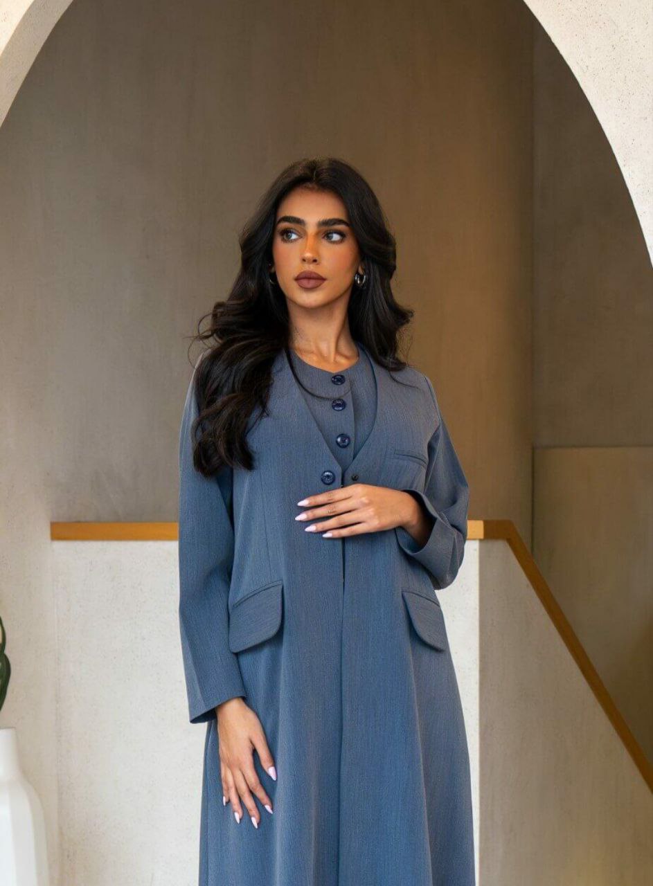 طقم كامل ازرق عباية و بنطلون و بلوزة (تفصيل)