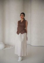 طقم كامل اوف وايت عباية و تنورة و بلوزة بني (تفصيل)