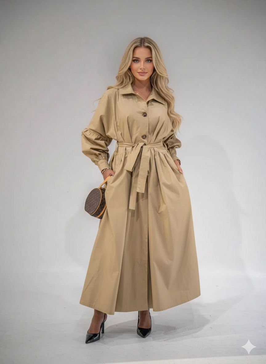 طقم كامل بني عسلي عباية و بنطلون و بلوزة بيج